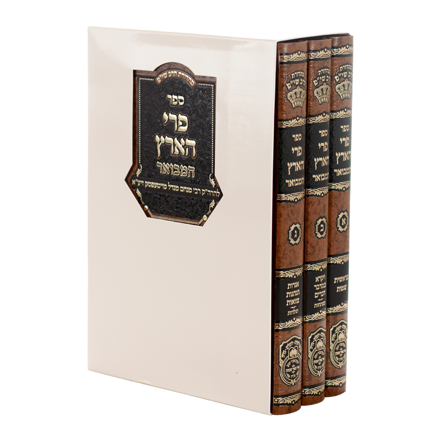 סט פרי הארץ המבואר על התורה מאת רבי מנחם מנדל מויטעפסק זיע"א. מהדורה מבוארת בביאור נרחב להבנת דבריו, ובתוספת הערות וציונים, הספר כולו הוגה ע"פ דפוסים ישנים עם הוספות ותיקונים רבים, ונערך מחדש עם חלוקה לקטעים, סימני פיסוק, נוספו כותרות ביאור לכל קטע, מפתחות המקורות ומפתחות עניינים ופרקי תולדות. כל אלו נסדרו בכלי מפואר, כמיטב ספרי 'ממלכת התורה עוז והדר'.